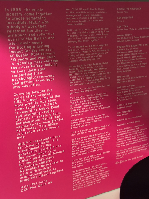 The first HELP album was recorded on September 4, 1995, mixed the following day, and on shelves four days later: a snapshot of British music at its most alive, assembled in a single day. Radiohead previewed what would become OK Computer. Pulp were at their peak. Oasis turned up, Kate Moss and Johnny Depp in tow, to cover “Fade Away.” The context was the Bosnian War; the result, critics said, was the best charity album ever made. HELP(2) doesn’t try to replicate that logic. Recorded over a week in November 2025 at Abbey Road Studios, produced by James Ford (Arctic Monkeys, Florence + the Machine, Depeche Mode), and directed on film by Jonathan Glazer, who handed cameras to children during the sessions. It’s a more considered exercise, wider in scope, and considerably more international. Twenty-three tracks. All profits go toward War Child UK, whose work covering emergency relief, education, and psychosocial care for children in conflict zones has only grown more urgent: one in five children worldwide now lives in a war zone.
